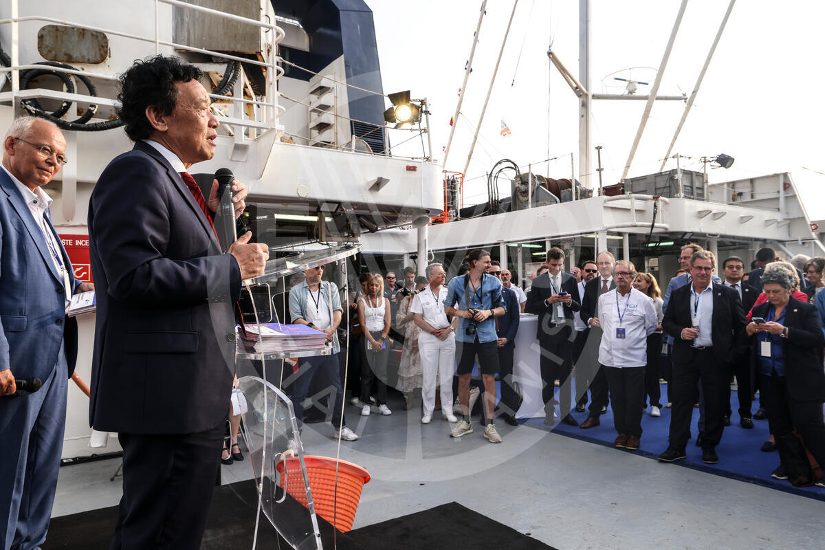 09 June 2025, Nice, France. FAO Director-General QU Dongyu, speaks during the From science to platter event (Thalassa Vessel). ©FAO/Alessandra Benedetti. Editorial use only. Copyright ©FAO
