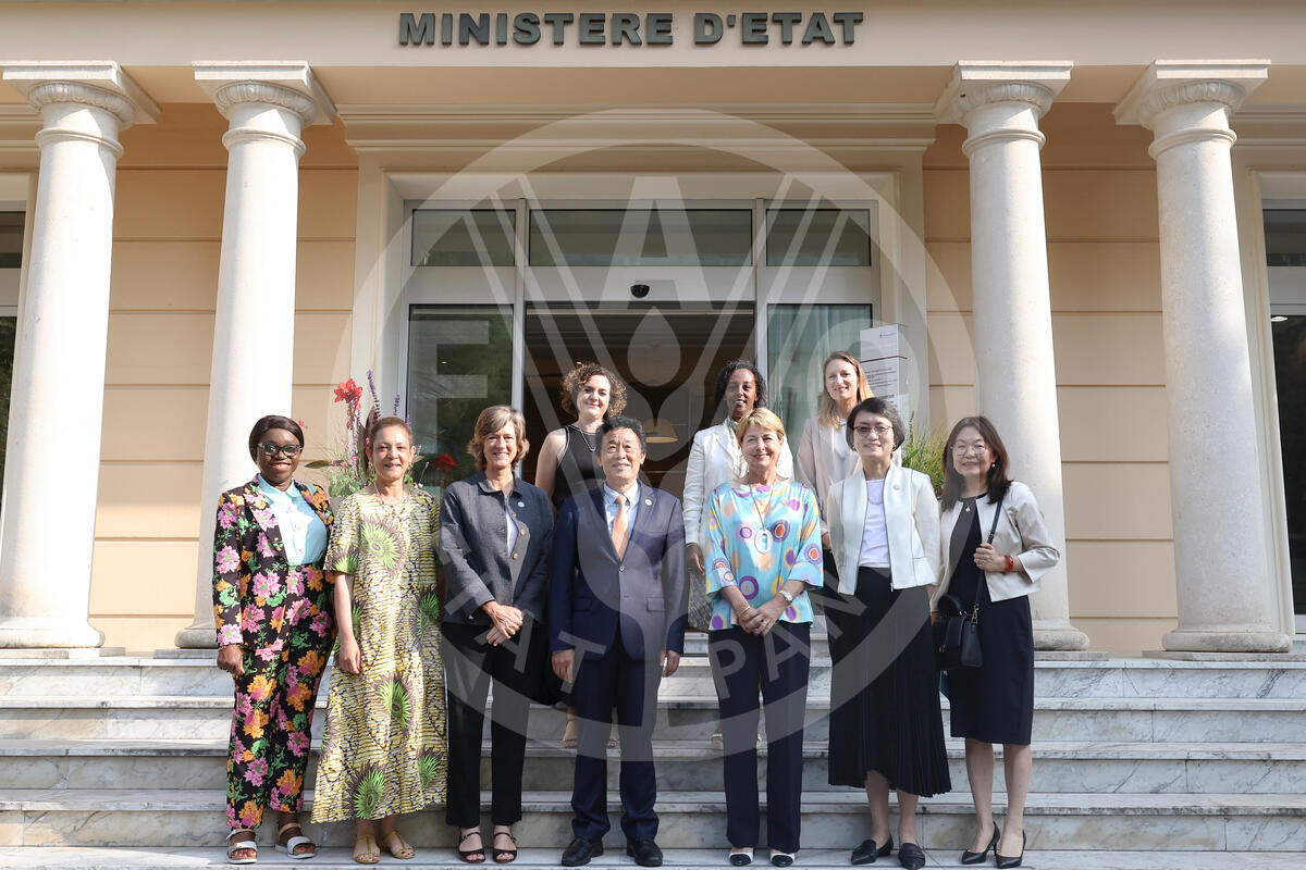 10 June 2025, Montecarlo, Monaco. FAO Director-General QU Dongyu (C Left ) and the Minister of Foreign Affairs and Cooperation of Monaco Isabelle Berro-Amadeï (C Right) pose for a family photo with their delegation.