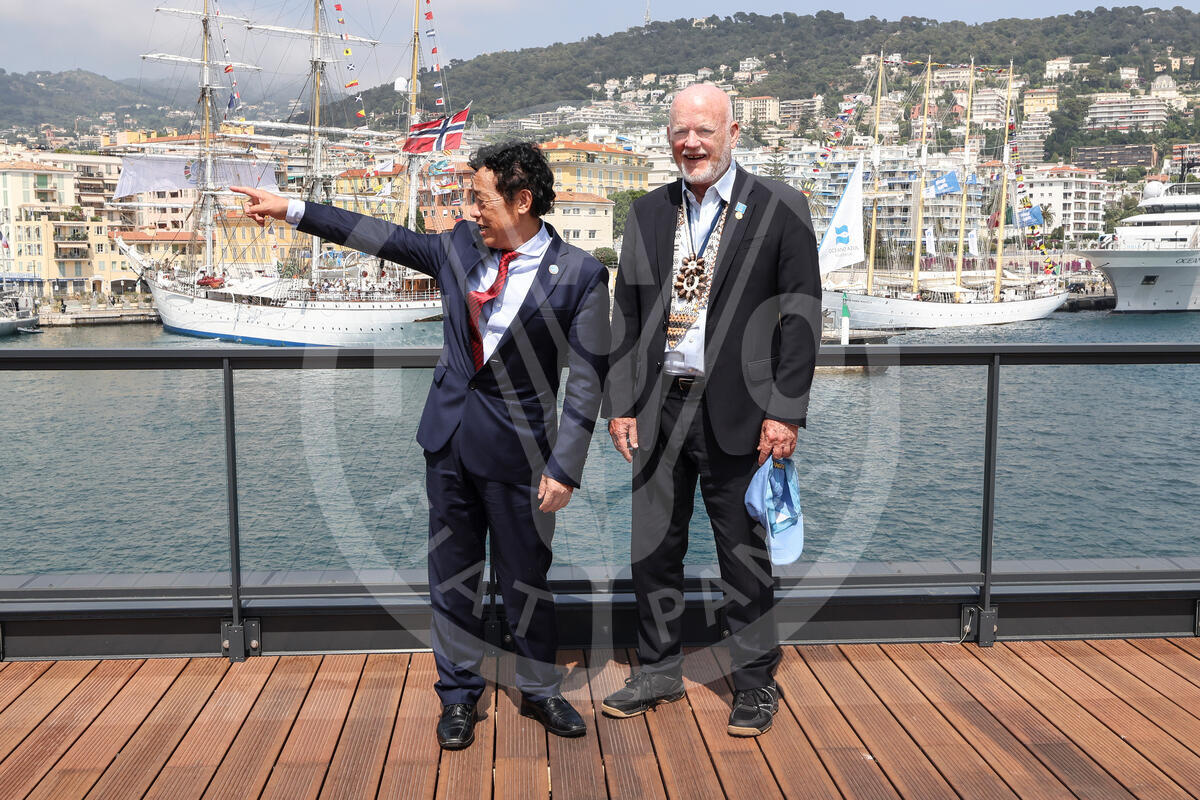 UNSG's Special Envoy for the Ocean on the terrace of the UNOC United Nations Ocean conference venue, ahead of their bilateral meeting.