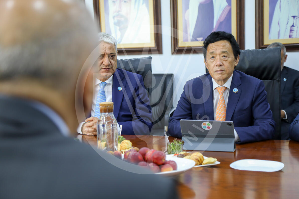 04 June 2025, Amman, Jordan. FAO Director-General QU Dongyu meets with H.E. Dr. Muawieh Radaideh, the Minister of Environment in Jordan to discuss cooperation related to climate change and alternative energy.
