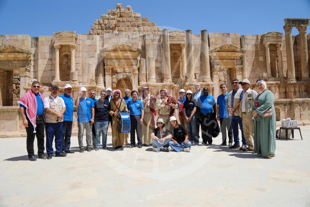 05 June 2025, Amman, Jordan. Group photo. FAO Director-General QU Dongyu (C) visits the ancient Roman city of Jerash, to explore the well-preserved monuments and Jordan’s rich cultural heritage.