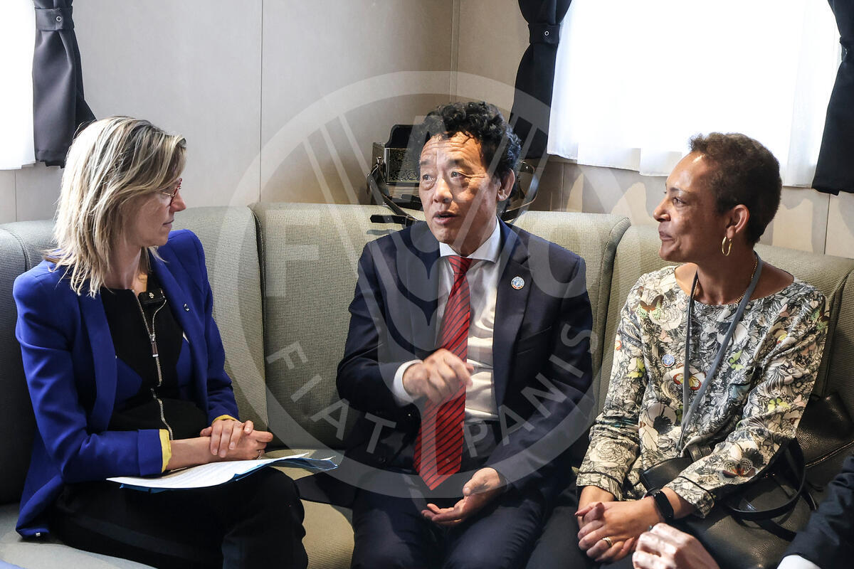09 June 2025, Nice, France. FAO Director-General QU Dongyu, meeting with with the Minister of Ecological Transition, Biodiversity, Forests, Sea and Fisheries of France Agnès Pannier-Runacher.