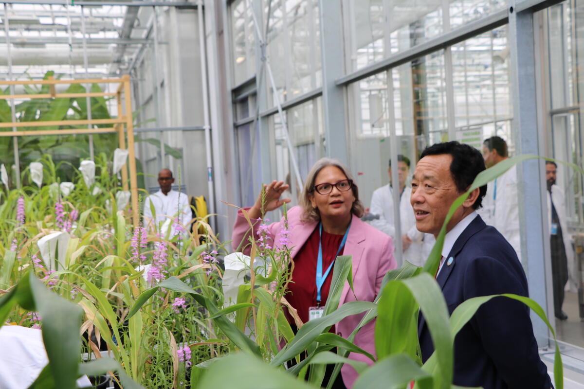 07 October 2025 Seibersdorf, Austria. FAO Director-General QU Dongyu (C) stands for a group photo during his visit to the new Greenhouses at Seibersdorf.