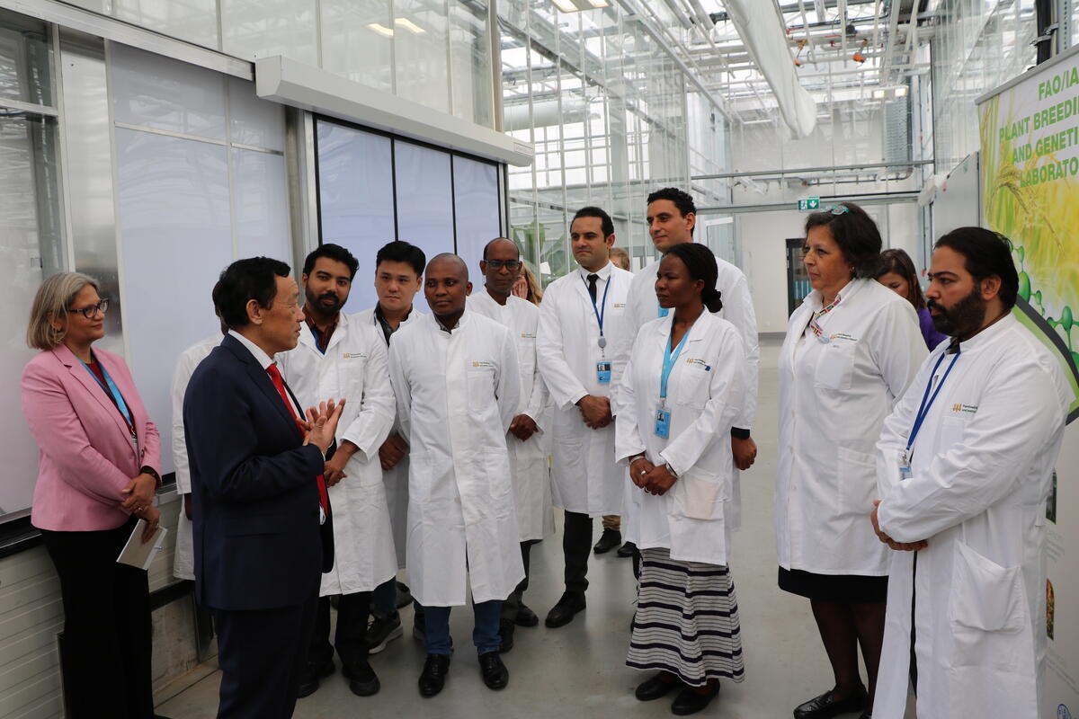 07 October 2025 Seibersdorf, Austria. FAO Director-General QU Dongyu visits the new Greenhouses at Seibersdorf.