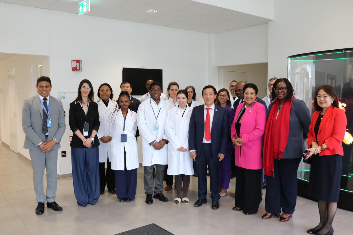 07 October 2025 Seibersdorf, Austria. FAO Director-General QU Dongyu (C) stands for a group photo during his visit to the new Greenhouses at Seibersdorf.
