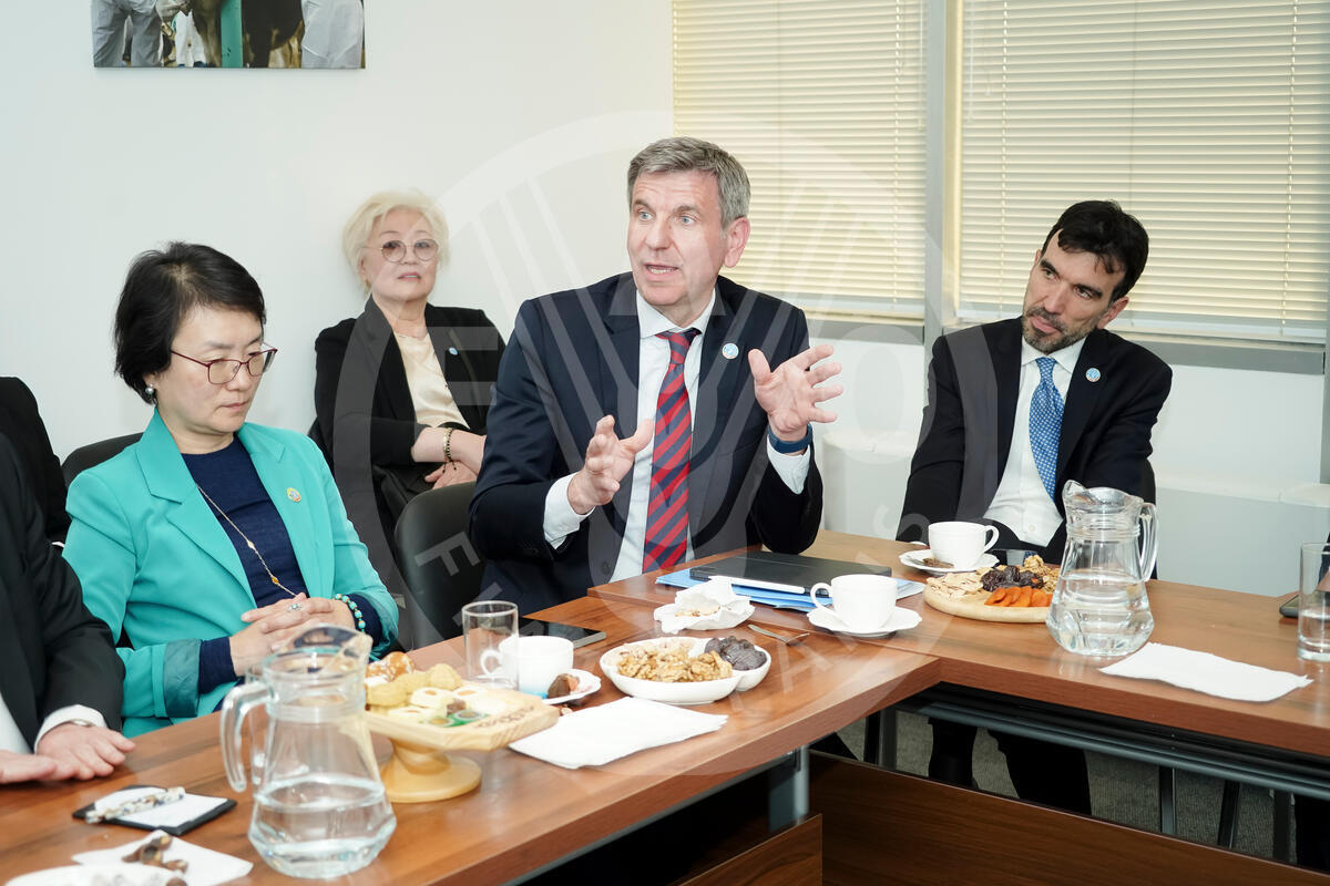 28 May 2025. Astana, Kazakhstan. (L-R) Yang Hua, FAO Deputy Director of Cabinet, Viorel Gutu, FAO Assistant Director-General, Regional Representative for Europe and Central Asia, Maurizio Martina, Deputy Director-General at FAO Partnership and Liaison Office in Kazakhstan.