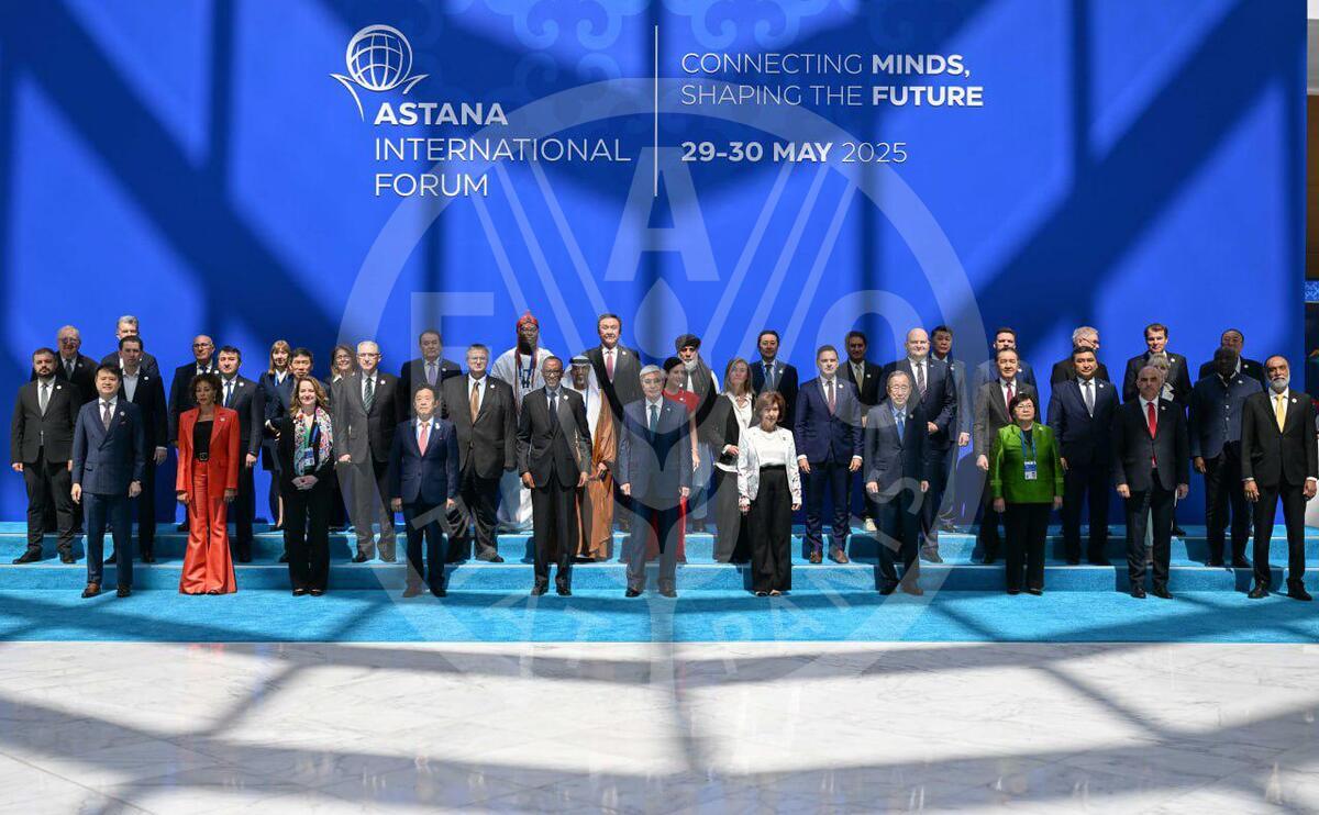 29 May 2025, Astana, Kazakhstan. Group photo of FAO Director-General QU Dongyu and particpants to the opening ceremony of the Astana international Forum.