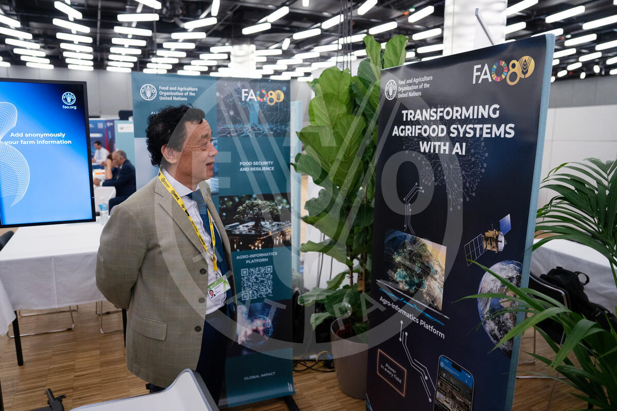 8 July 2025. Geneva, Switzerland. FAO Director-General QU Dongyu visits the FAO exhibition pavilion during the AI for Good Global Summit 2025.