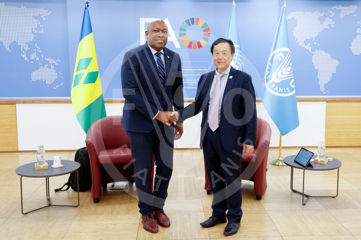 ITALY 2025. FAO DG meets with Saint Vincent & the Grenadines Minister for Agriculture, Forestry, Fisheries and Rural Transformation, Industry & Labour, Saboto Caesar