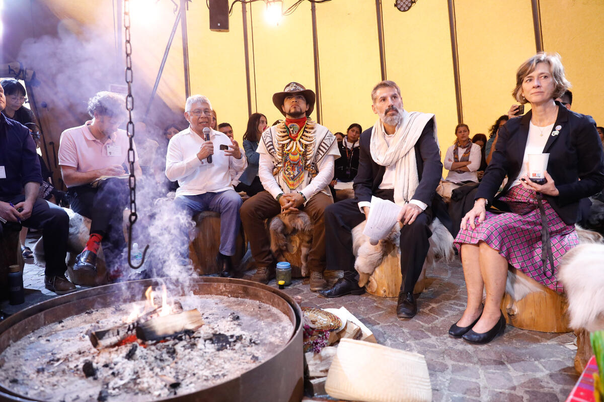 15 October 2025, Rome, Italy. Beth Crawford, ADG/Director of the Office of Strategy, Programme and Budget (OSP) (R) attends the Joint session of Indigenous Peoples with FAO Science and Innovation Forum, Indigenous Peoples Territory Opening Remarks. World Food Forum (WFF) 2025. The fifth edition of the World Food Forum (WFF), the largest annual gathering of agrifood systems stakeholders globally, runs at FAO headquarters in Rome from 10 to 17 October 2025. FAO Headquarters.