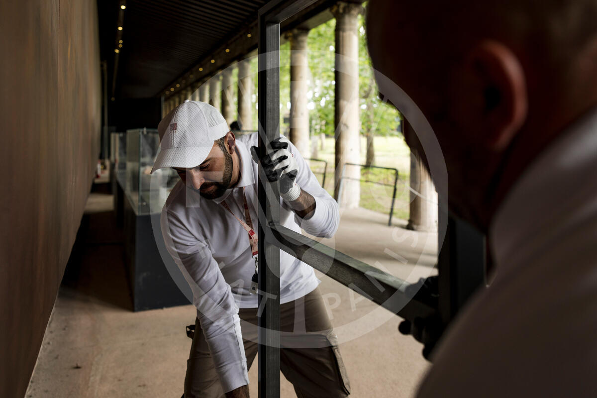 15 May 2025. Pompeii, Italy. Workers install totems in Pompeii site, built as part of the “Sustainable Pompeii” project, created by FAO in collaboration with the Archaeological Park of Pompeii and the Italian Ministry of Foreign Affairs and International Cooperation (MAECI).