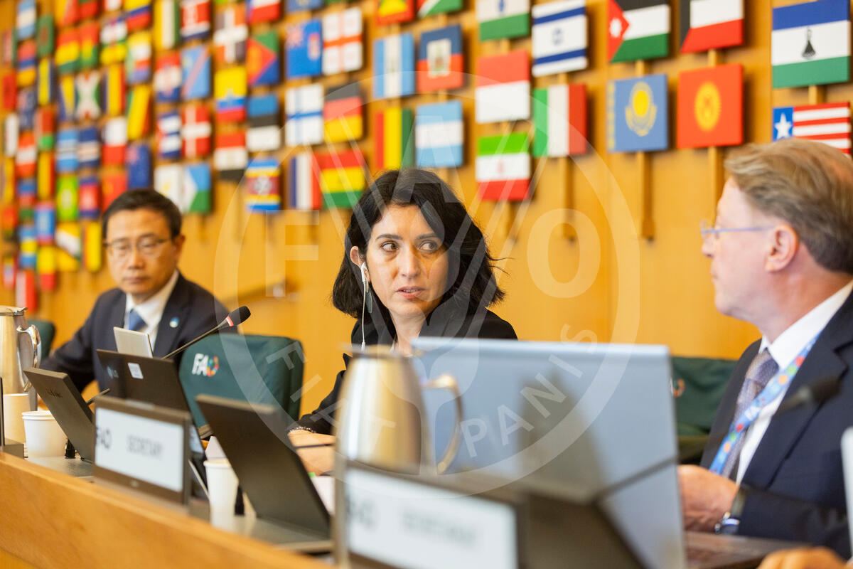 20 May 2025, Rome, Italy.Ms Burcu Bilgin Topçu Chair COFI (C) during the13th Sub-Committee on Aquaculture, COFI, afternoon session. FAO Headquarters (Green Room).