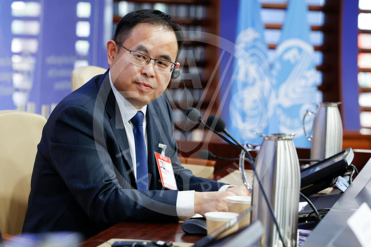 22 May 2025. Rome, Italy. Wenbo Zhang, College of Fisheries and Life Science, Shanghai Ocean University, China, delivers his address during the 13th Session of the COFI Sub-Committee on Aquaculture: Side event: “Shared waters, shared futures: shaping aquaculture through co-management” . FAO headquarters, (Sheikh Zayed Center).