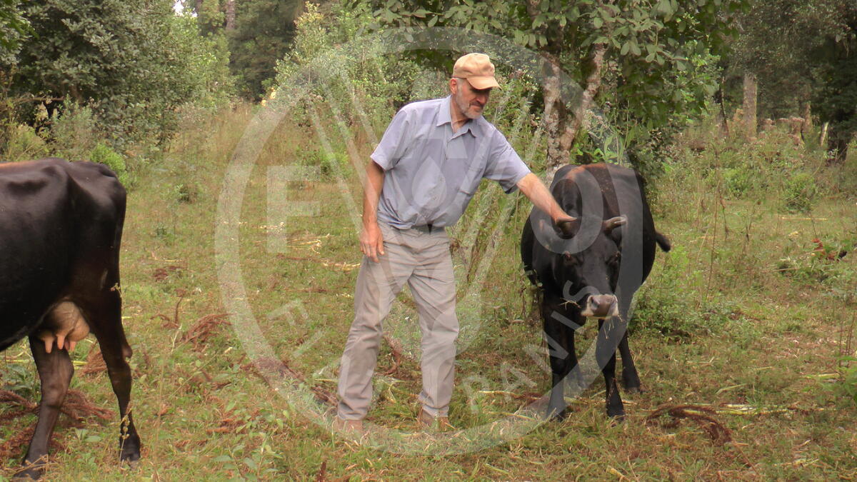 7 May 2025. Faxinal Emboque, São Mateus do Sul, Brazil. Paulo Wnglarek with free-range animals in Faxinal Emboque, in the municipality of São Mateus do Sul.