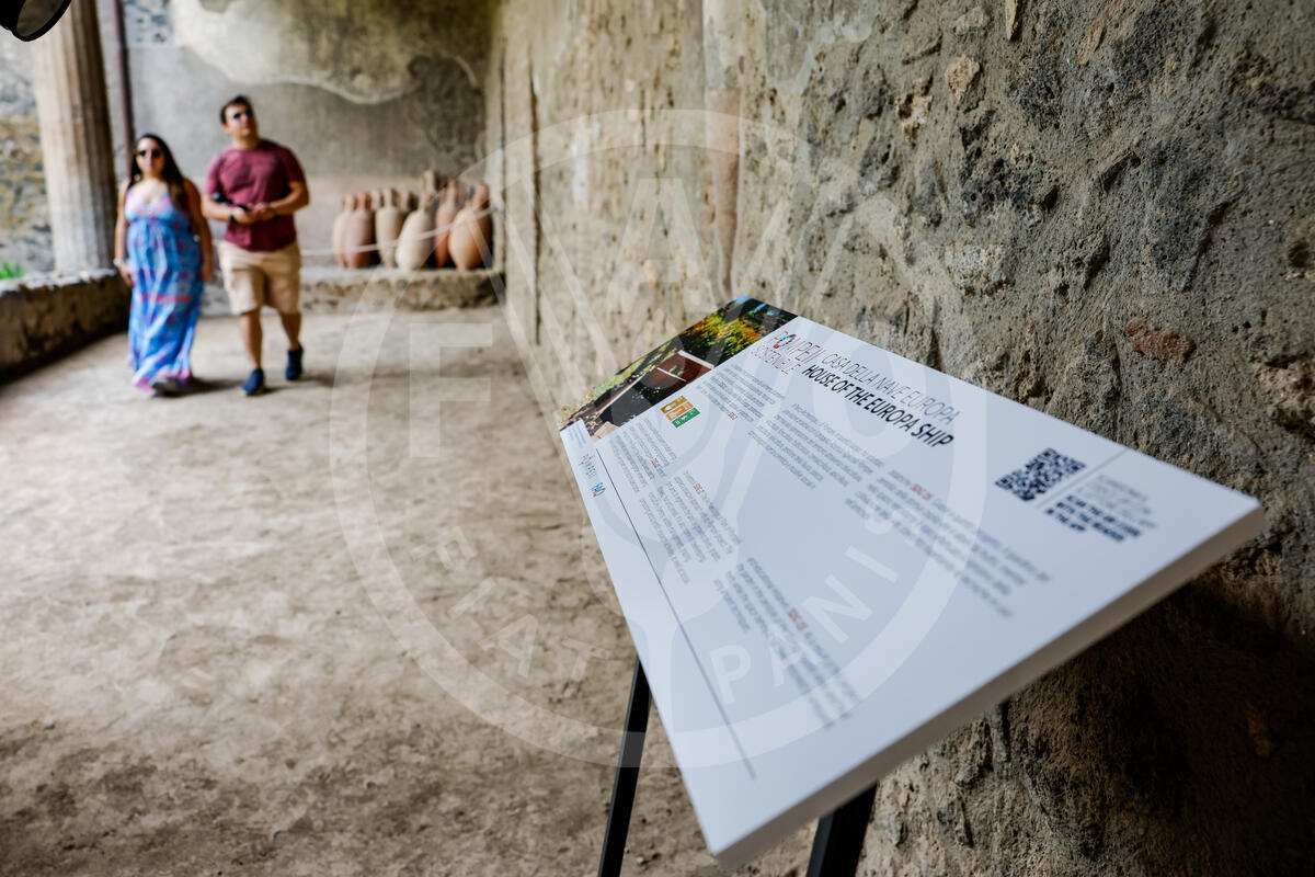 15 May 2025. Pompeii, Italy. A totem installed in Pompeii site, built as part of the “Sustainable Pompeii” project, created by FAO in collaboration with the Archaeological Park of Pompeii and the Italian Ministry of Foreign Affairs and International Cooperation (MAECI).