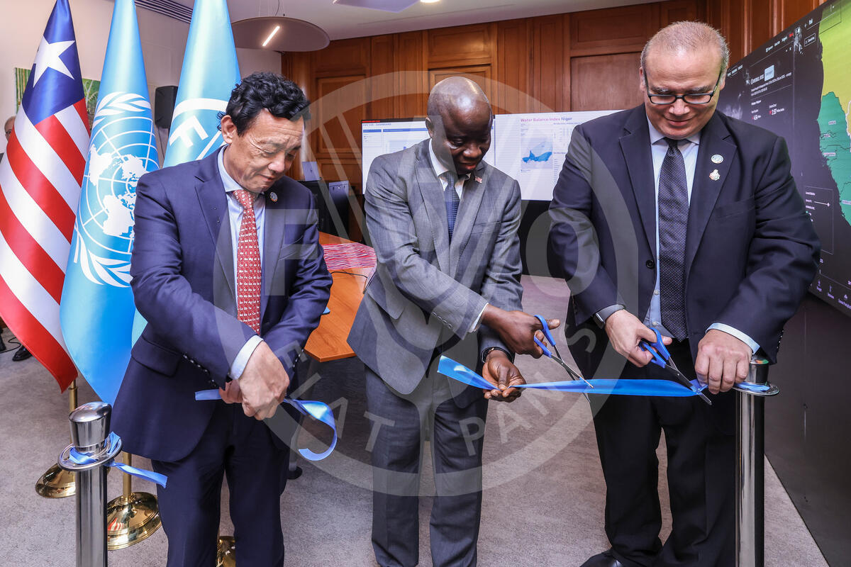 01 July 2025, Rome, Italy. (Left to Right) FAO Director-General QU Dongyu, Alexander Nuetah, Minister for Agriculture of Liberia and MAximo Torero FAO Chief Economist, inaugurate the new Liberia Situation Room. FAO Headquarters (Liberia Situation Room).