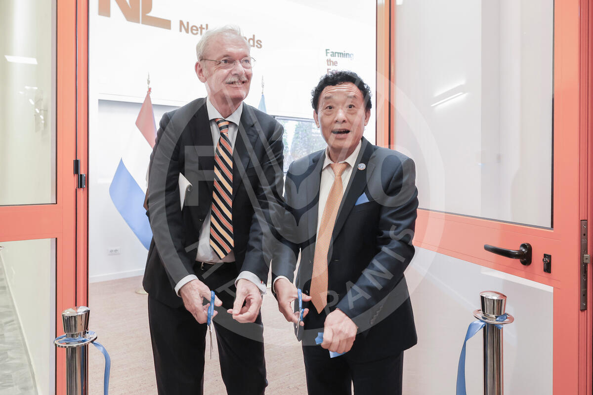 30 June 2025, Rome, Italy. FAO Director-General QU Dongyu (R) and Netherlands Minister Fishery, Food Security, Horticulture and Nature Conservation Jean Rummenie (L), attend the inauguration of the Netherland Acceleration Room, FAO. FAO Conference 44th Session.