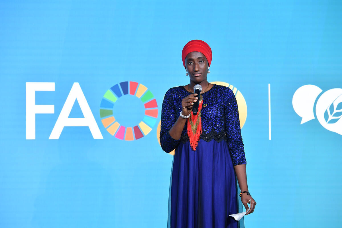 14 October 2025. FAO Headquarters, Rome, Italy. Rokiatou Traoré, Founder and Executive Manager of Herou Alliance, delivers her address during the High-Level Opening of the Science and Innovation Forum at the World Food Forum 2025.