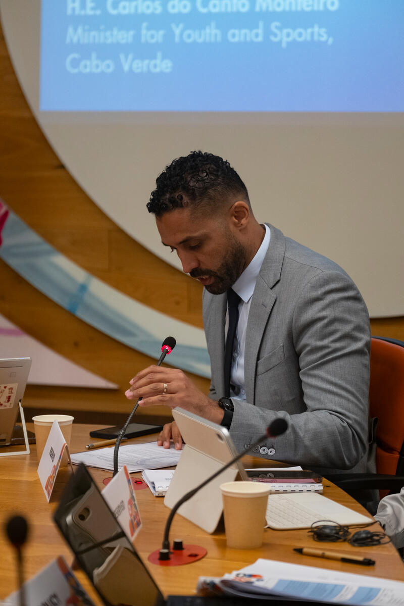 14 October 2025. FAO Headquarters, Rome, Italy. His Excellency Carlos do Canto Monteiro, Minister for Youth and Sports of Cabo Verde, delivers his speech during the Youth Assembly Session: Africa Roundtable