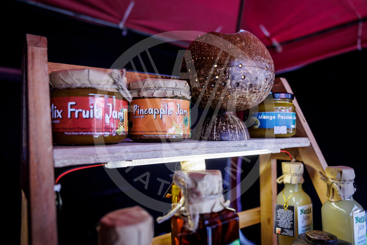 SRI LANKA, 2025. Fruit beverages, jams, and sauces displayed