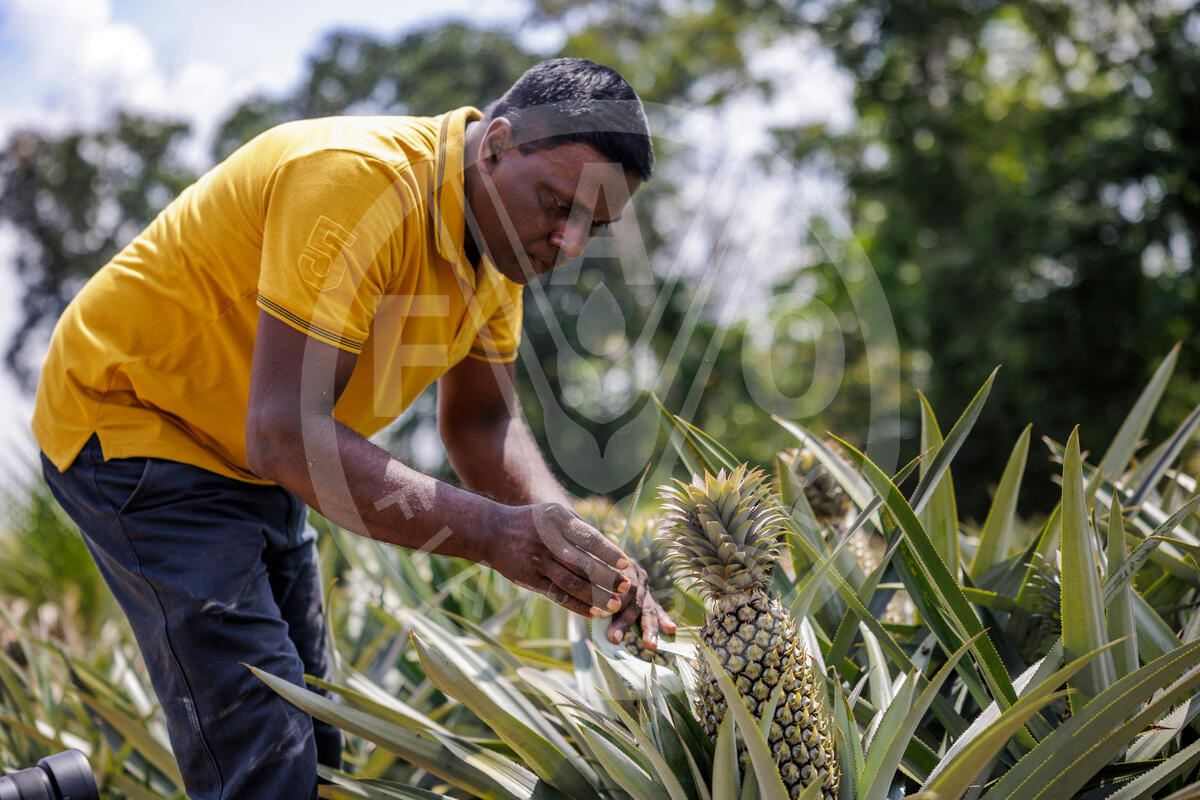 SRI LANKA, 2025. Pineapple farmer in his field