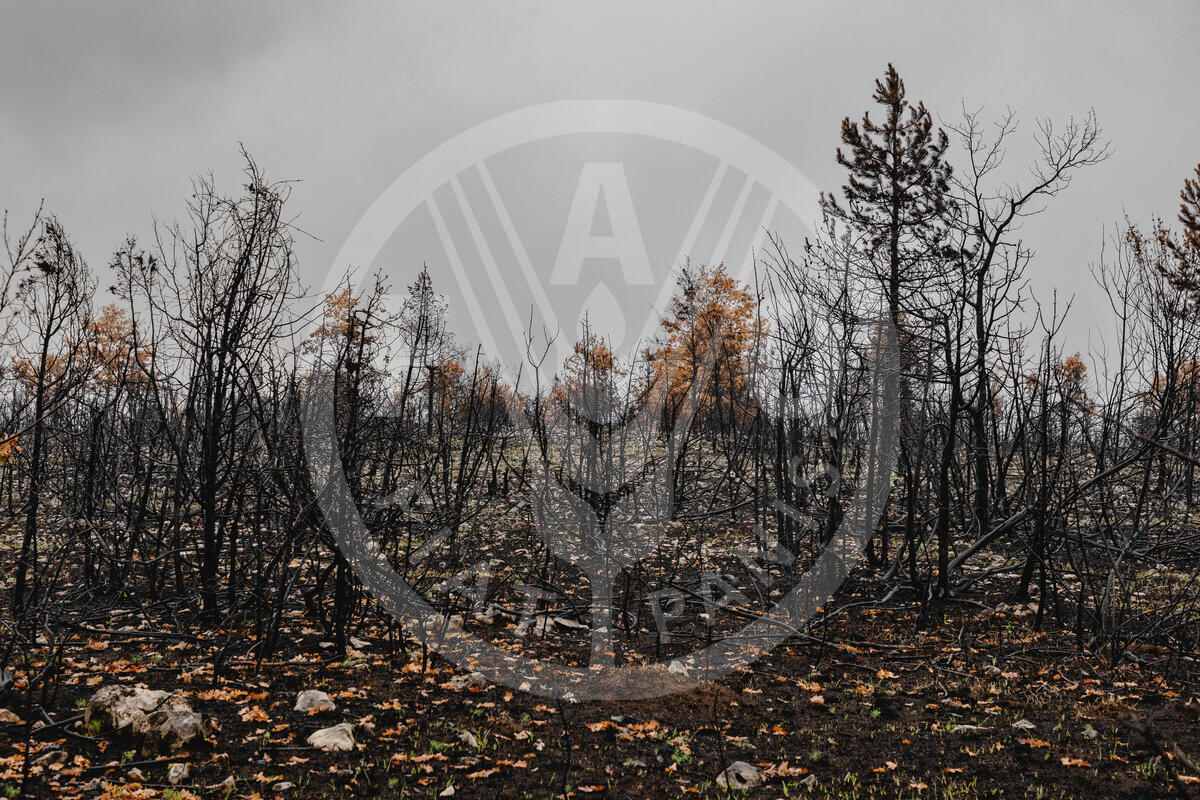 Burned trees following a summer fire.