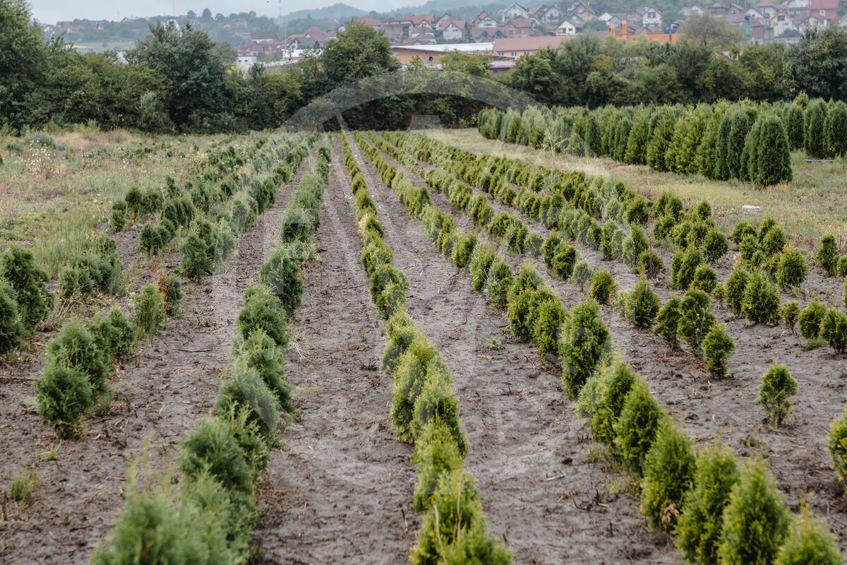 29 July 2025, Požega, Republic of Serbia. Rows of conifer seedlings at the Pozega nursery field.