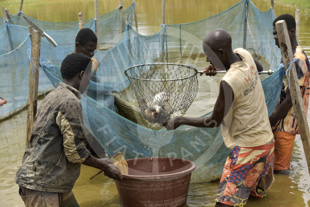 CÔTE D’IVOIRE 2025. Fish farmers collect tilapia broodstock