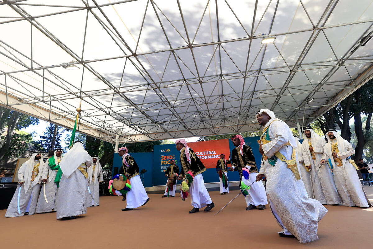 11 October 2025, Rome, Italy. Al-Ardha Saudi Traditional Dance (Saudi Arabia). FAO Global Exhibition: From Seeds to Foods. (Porta Capena Park). World Food Forum (WFF) 2025. The fifth edition of the World Food Forum (WFF), the largest annual gathering of agrifood systems stakeholders globally, runs at FAO headquarters in Rome from 10 to 17 October 2025.