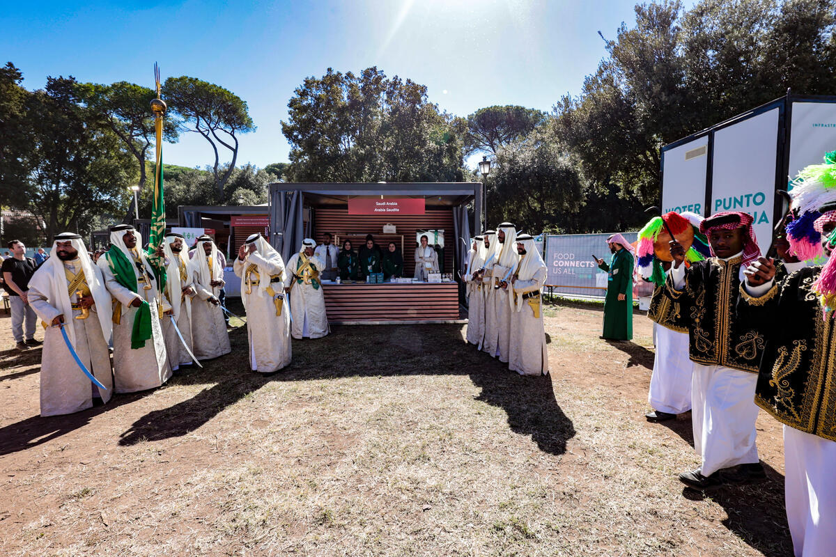 11 October 2025, Rome, Italy. Al-Ardha Saudi Traditional Dance. FAO Global Exhibition: From Seeds to Foods. (Porta Capena Park). World Food Forum (WFF) 2025. The fifth edition of the World Food Forum (WFF), the largest annual gathering of agrifood systems stakeholders globally, runs at FAO headquarters in Rome from 10 to 17 October 2025.