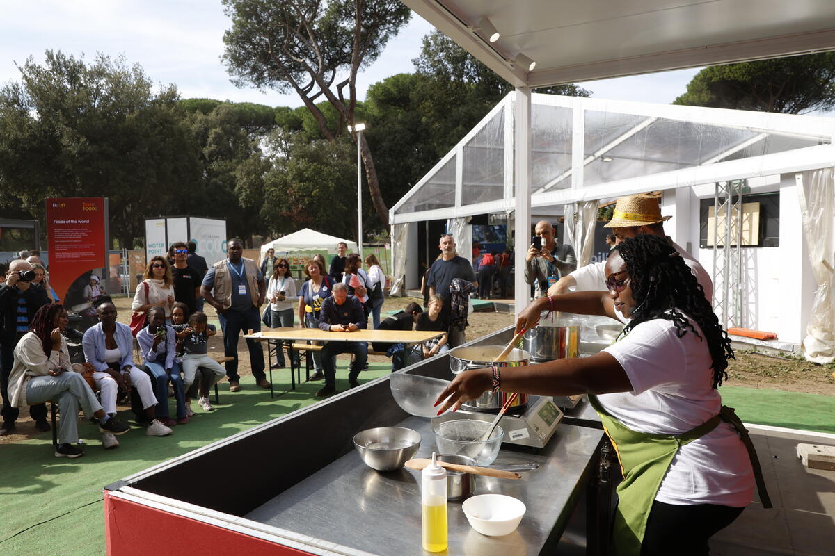 12 October 2025, Rome, Italy. Ugali & Sukuma Wiki led by Chefs Jedidah Wambui Nderitu & Francesco Soldati, World Farmers Markets Coalition. FAO Global Exhibition: From Seeds to Foods. (Porta Capena Park). World Food Forum (WFF) 2025. The fifth edition of the World Food Forum (WFF), the largest annual gathering of agrifood systems stakeholders globally, runs at FAO headquarters in Rome from 10 to 17 October 2025.