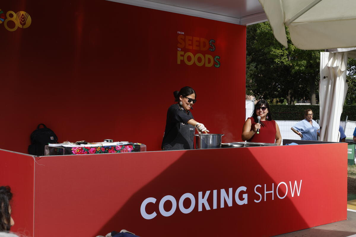 12 October 2025, Rome, Italy. Gathering Flavors of the North – A Canadian Indigenous Cooking Demonstration led by Chef Stephanie Baryluk, Nihkhah, Canada. FAO Global Exhibition: From Seeds to Foods. (Porta Capena Park). World Food Forum (WFF) 2025. The fifth edition of the World Food Forum (WFF), the largest annual gathering of agrifood systems stakeholders globally, runs at FAO headquarters in Rome from 10 to 17 October 2025.