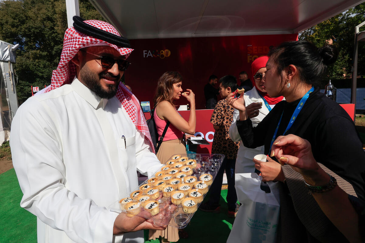 10 October 2025, Rome, Italy. Cooking show with Ammar Albarakati. FAO Global Exhibition: From Seeds to Foods. (Porta Capena Park). World Food Forum (WFF) 2025. The fifth edition of the World Food Forum (WFF), the largest annual gathering of agrifood systems stakeholders globally, runs at FAO headquarters in Rome from 10 to 17 October 2025.