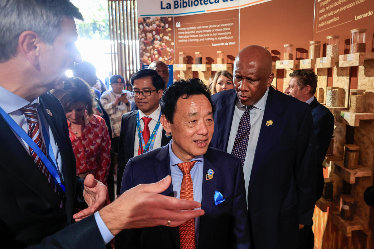 10 October 2025, Rome, Italy. FAO Director-General QU Dongyu visits the FAO Global Exhibition: From Seeds to Foods. (Porta Capena Park). World Food Forum (WFF) 2025. The fifth edition of the World Food Forum (WFF), the largest annual gathering of agrifood systems stakeholders globally, runs at FAO headquarters in Rome from 10 to 17 October 2025.