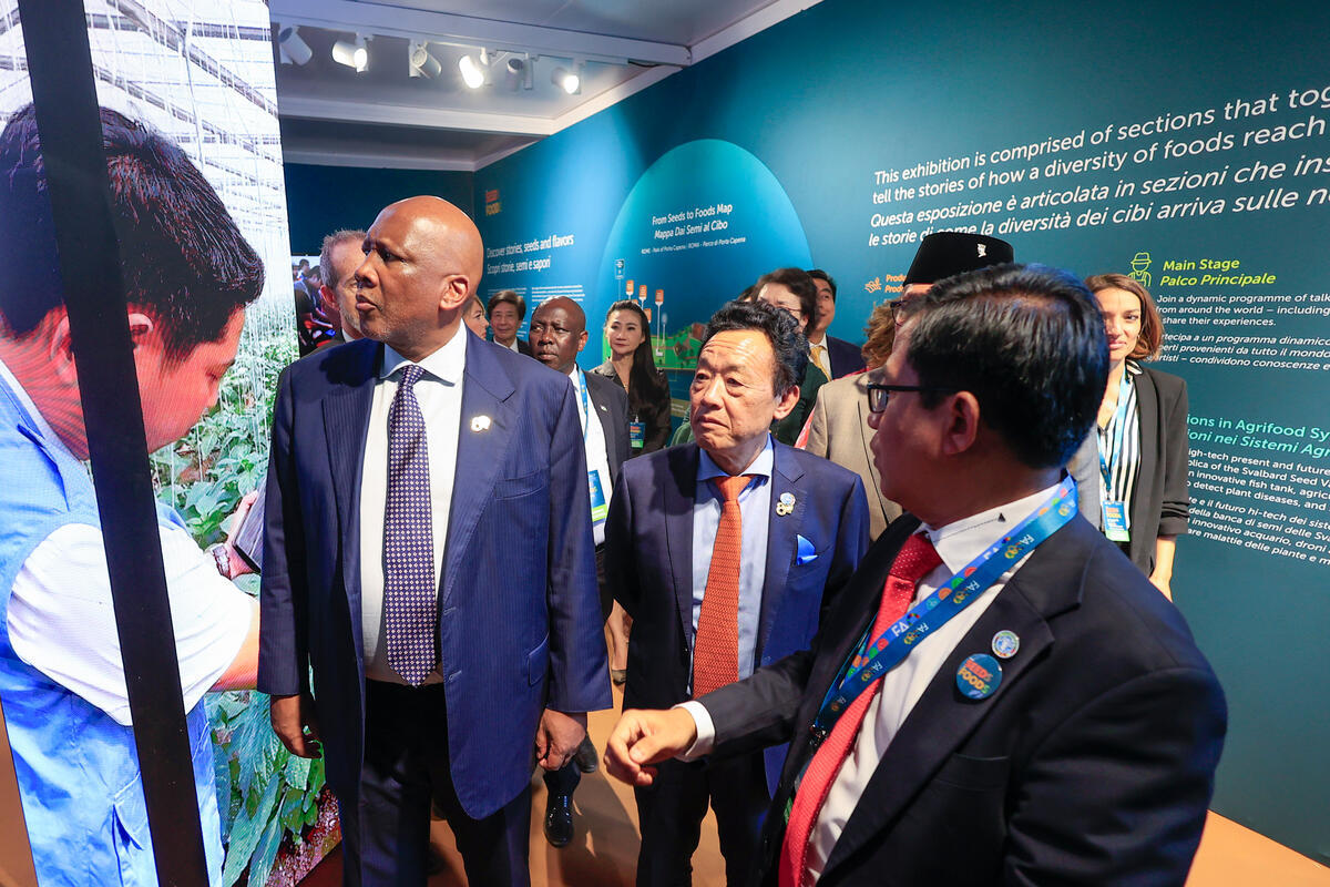 10 October 2025, Rome, Italy. FAO Director-General QU Dongyu visits the FAO Global Exhibition: From Seeds to Foods. (Porta Capena Park). World Food Forum (WFF) 2025. The fifth edition of the World Food Forum (WFF), the largest annual gathering of agrifood systems stakeholders globally, runs at FAO headquarters in Rome from 10 to 17 October 2025.