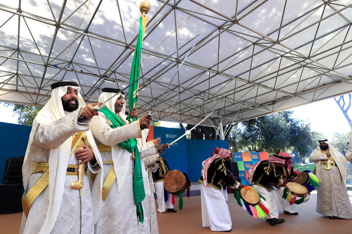 11 October 2025, Rome, Italy. Al-Ardha Saudi Traditional Dance (Saudi Arabia). FAO Global Exhibition: From Seeds to Foods. (Porta Capena Park). World Food Forum (WFF) 2025. The fifth edition of the World Food Forum (WFF), the largest annual gathering of agrifood systems stakeholders globally, runs at FAO headquarters in Rome from 10 to 17 October 2025.