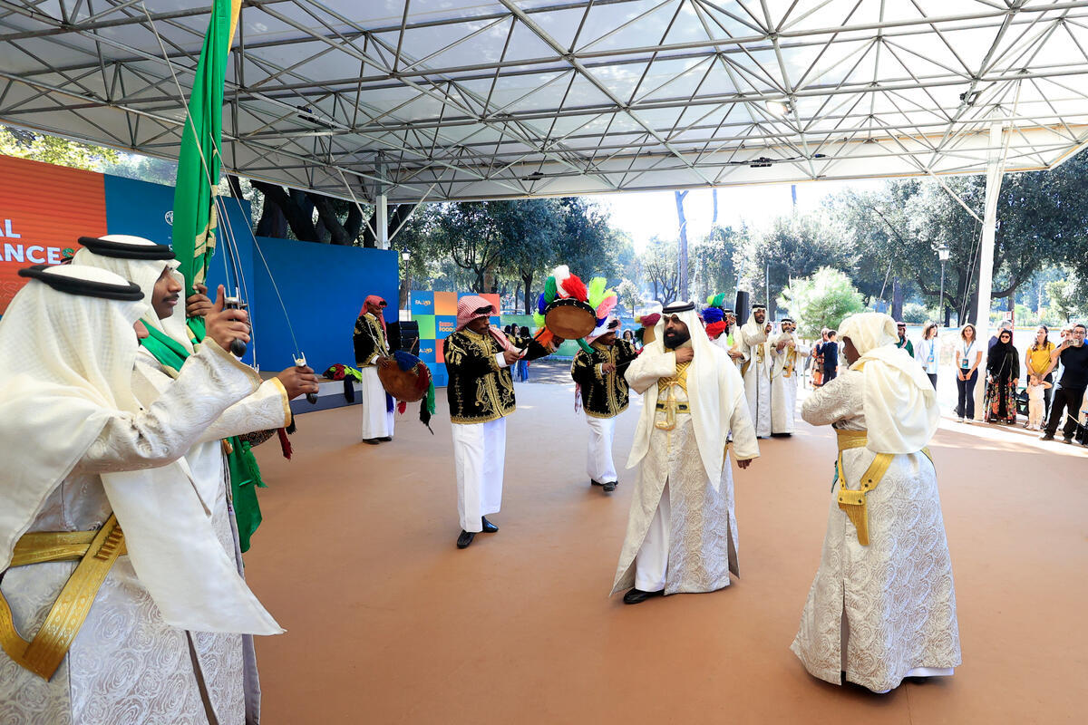 11 October 2025, Rome, Italy. Al-Ardha Saudi Traditional Dance (Saudi Arabia). FAO Global Exhibition: From Seeds to Foods. (Porta Capena Park). World Food Forum (WFF) 2025. The fifth edition of the World Food Forum (WFF), the largest annual gathering of agrifood systems stakeholders globally, runs at FAO headquarters in Rome from 10 to 17 October 2025.