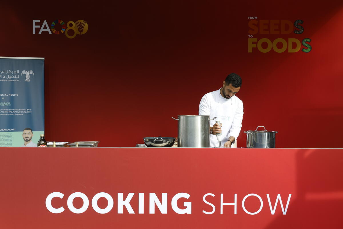 12 October 2025, Rome, Italy. Infused Steak & Dates Mushroom Orzo Risotto led by Chef Ammar, National Center for Palms and Dates, Saudi Arabia. FAO Global Exhibition: From Seeds to Foods. (Porta Capena Park). World Food Forum (WFF) 2025. The fifth edition of the World Food Forum (WFF), the largest annual gathering of agrifood systems stakeholders globally, runs at FAO headquarters in Rome from 10 to 17 October 2025.