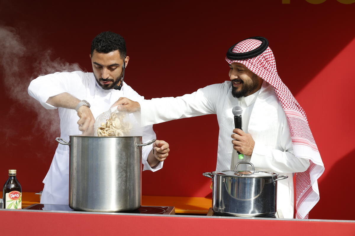 12 October 2025, Rome, Italy. Infused Steak & Dates Mushroom Orzo Risotto led by Chef Ammar, National Center for Palms and Dates, Saudi Arabia. FAO Global Exhibition: From Seeds to Foods. (Porta Capena Park). World Food Forum (WFF) 2025. The fifth edition of the World Food Forum (WFF), the largest annual gathering of agrifood systems stakeholders globally, runs at FAO headquarters in Rome from 10 to 17 October 2025.