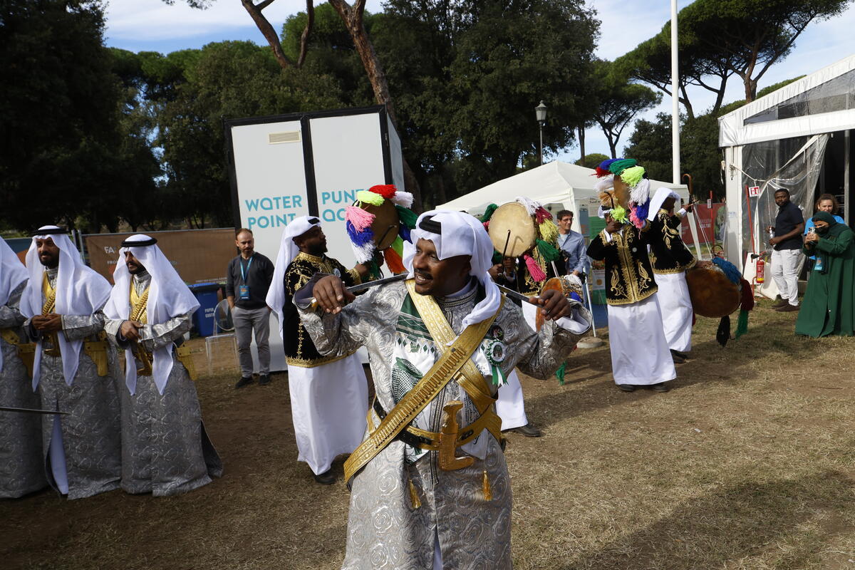 12 October 2025, Rome, Italy. Al-Ardha Saudi Traditional Dance. FAO Global Exhibition: From Seeds to Foods. (Porta Capena Park). World Food Forum (WFF) 2025. The fifth edition of the World Food Forum (WFF), the largest annual gathering of agrifood systems stakeholders globally, runs at FAO headquarters in Rome from 10 to 17 October 2025.