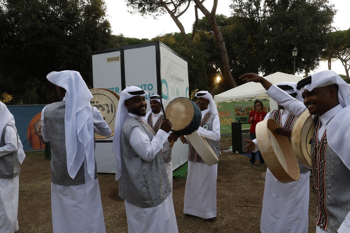 12 October 2025, Rome, Italy. Al-Ardha Saudi Traditional Dance. FAO Global Exhibition: From Seeds to Foods. (Porta Capena Park). World Food Forum (WFF) 2025. The fifth edition of the World Food Forum (WFF), the largest annual gathering of agrifood systems stakeholders globally, runs at FAO headquarters in Rome from 10 to 17 October 2025.