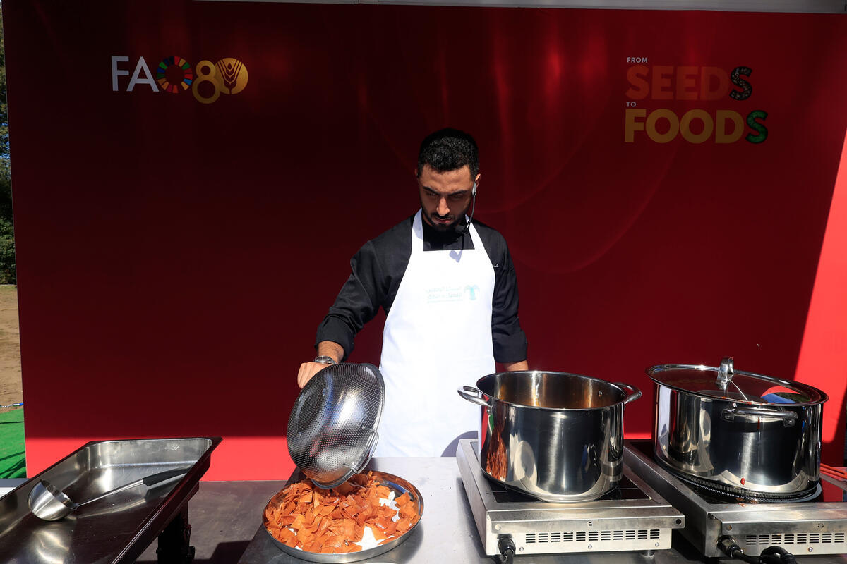 10 October 2025, Rome, Italy. Cooking show with Ammar Albarakati. FAO Global Exhibition: From Seeds to Foods. (Porta Capena Park). World Food Forum (WFF) 2025. The fifth edition of the World Food Forum (WFF), the largest annual gathering of agrifood systems stakeholders globally, runs at FAO headquarters in Rome from 10 to 17 October 2025.