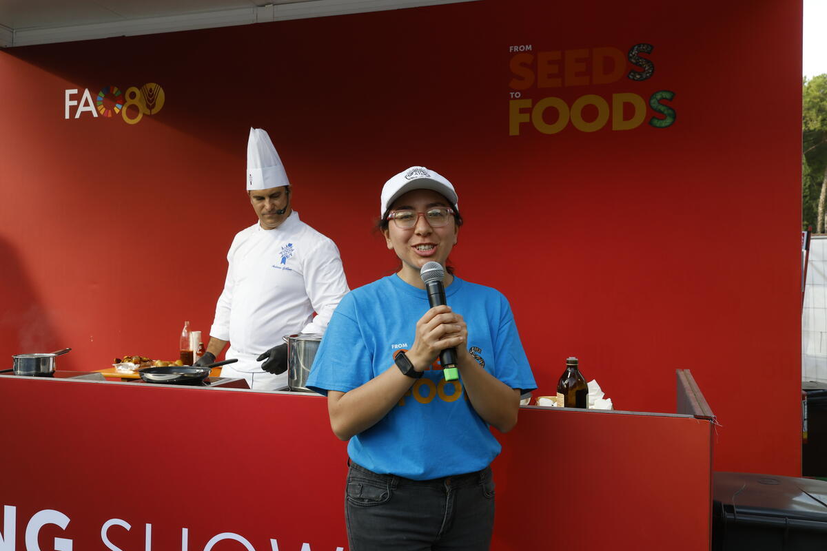 12 October 2025, Rome, Italy. Adobo & DO Pallares: A Mochica-Inspired Feast - a culinary demonstration that explores the dialogue between Andean and Mochica heritage led by Chef Andrew Gibbon, Le Cordon Bleu, Peru. FAO Global Exhibition: From Seeds to Foods. (Porta Capena Park). World Food Forum (WFF) 2025. The fifth edition of the World Food Forum (WFF), the largest annual gathering of agrifood systems stakeholders globally, runs at FAO headquarters in Rome from 10 to 17 October 2025.