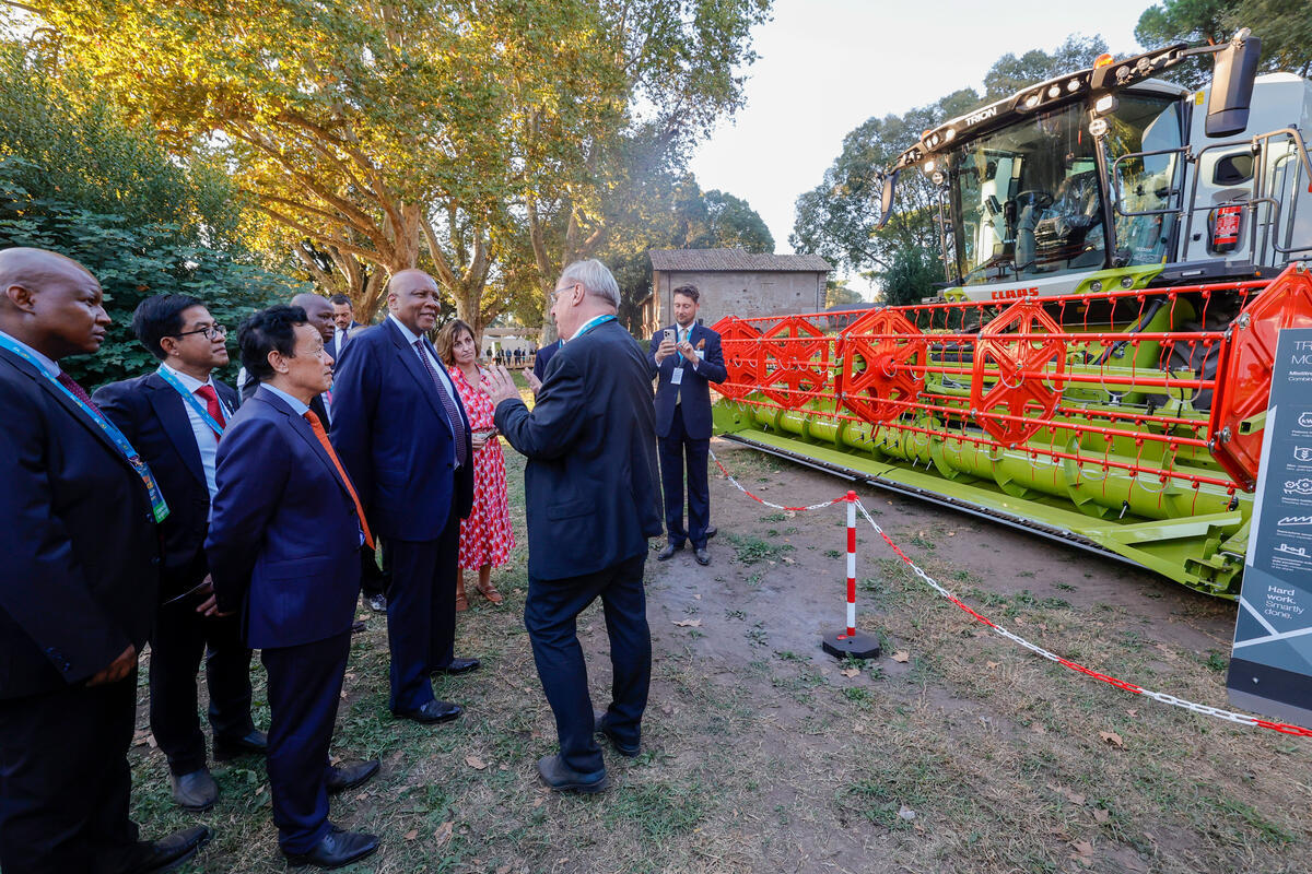 10 October 2025, Rome, Italy. FAO Director-General QU Dongyu (3rd from left), next to Lesotho King Letsie III, (4th from left) is briefed about a combine harvester during the FAO Global Exhibition: From Seeds to Foods. (Porta Capena Park). World Food Forum (WFF) 2025. The fifth edition of the World Food Forum (WFF), the largest annual gathering of agrifood systems stakeholders globally, runs at FAO headquarters in Rome from 10 to 17 October 2025.