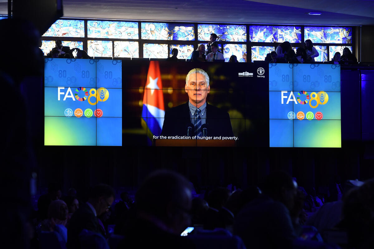 13 october 2025. FAO Headquarters, Rome, Italy. Micheal DÃaz Canel - President of the Republic of Cuba delivers his address during the Grand Opening at the World Food Forum 2025.