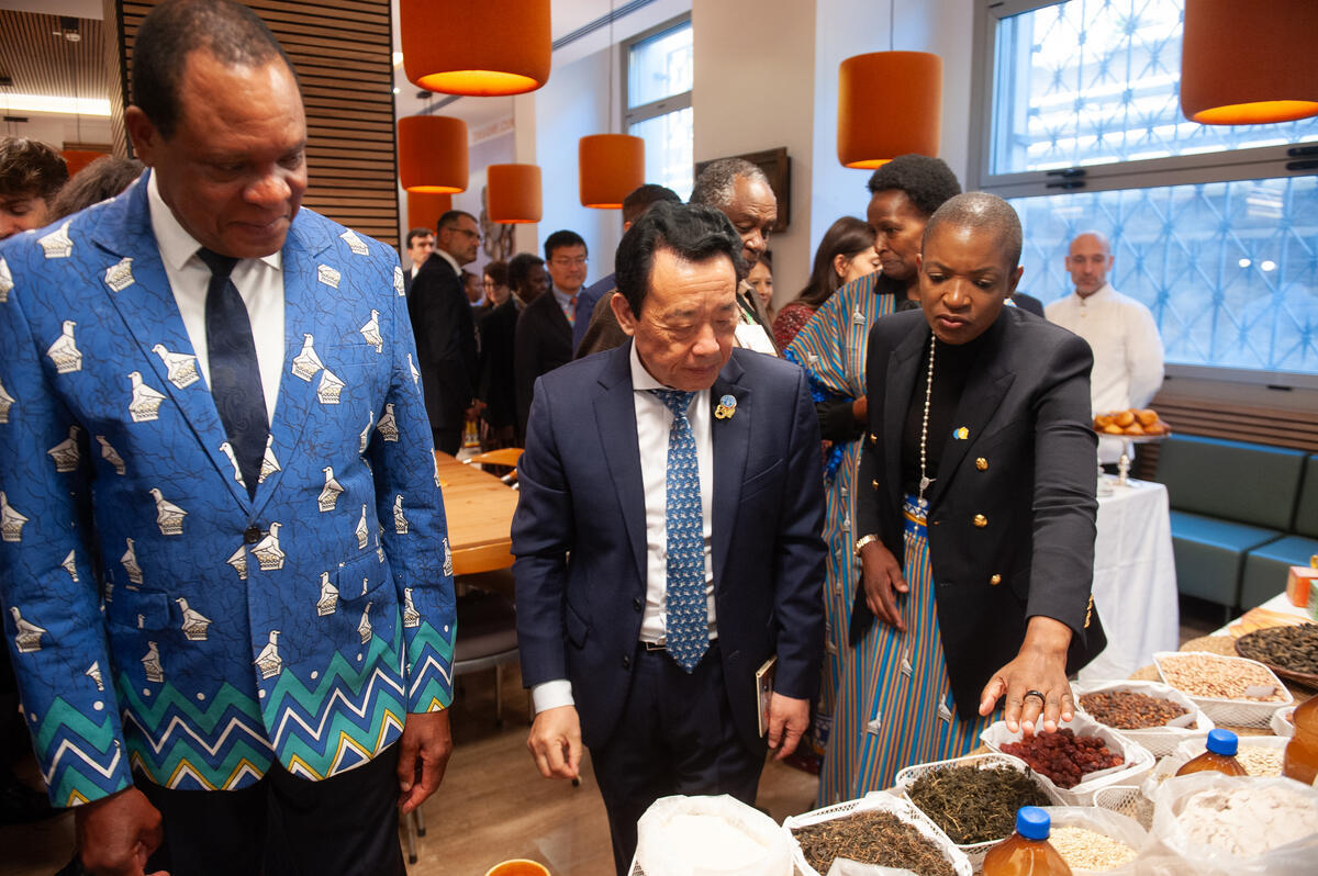13 October 2025, Rome, Italy. FAO Director-General QU Dongyu and Zimbabwe Minister Agriculture, Fisheries, Water & Rural Development Anxious Jongwe Masuka inaugurate the new Zimbabwe Lounge. World Food Forum (WFF) 2025. The fifth edition of the World Food Forum (WFF), the largest annual gathering of agrifood systems stakeholders globally, runs at FAO headquarters in Rome from 10 to 17 October 2025. FAO Headquarters. (Zimbabwe Lounge).