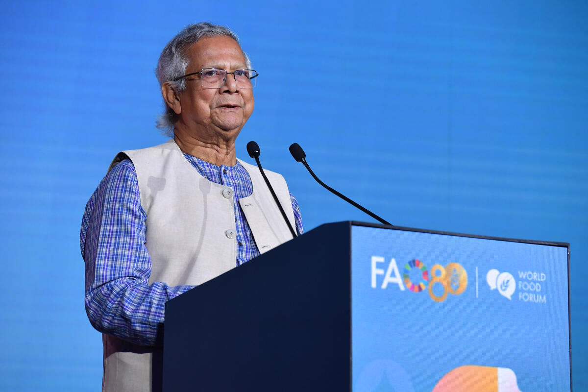 13 october 2025. FAO Headquarters, Rome, Italy. H.E. Muhammad Yunus - Chief adviser of the interim government of the people’s republic of Bangladesh delivers his address during the Grand Opening at the World Food Forum 2025.