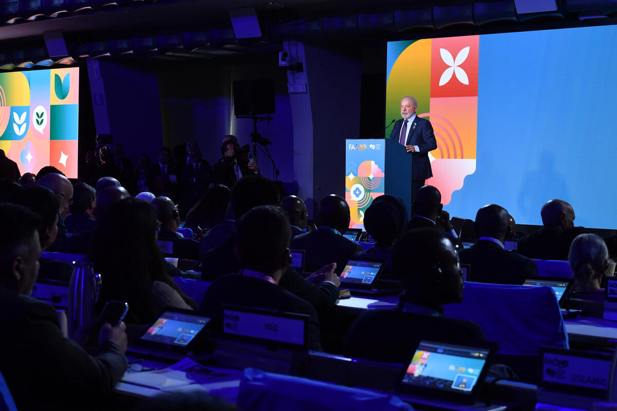 13 october 2025. FAO Headquarters, Rome, Italy. H.E. Luiz Inácio Lula da Silva - President of the Federative Republic of Brazil delivers his address during the Grand Opening at the World Food Forum 2025.