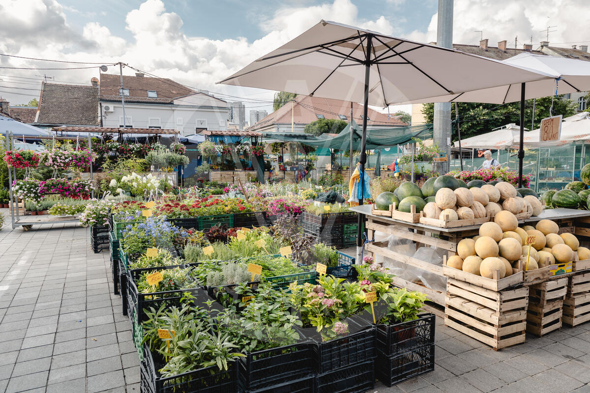 28 July 2025, Belgrade, Republic of Serbia. Flowers and fruits at the open market in Zemun.