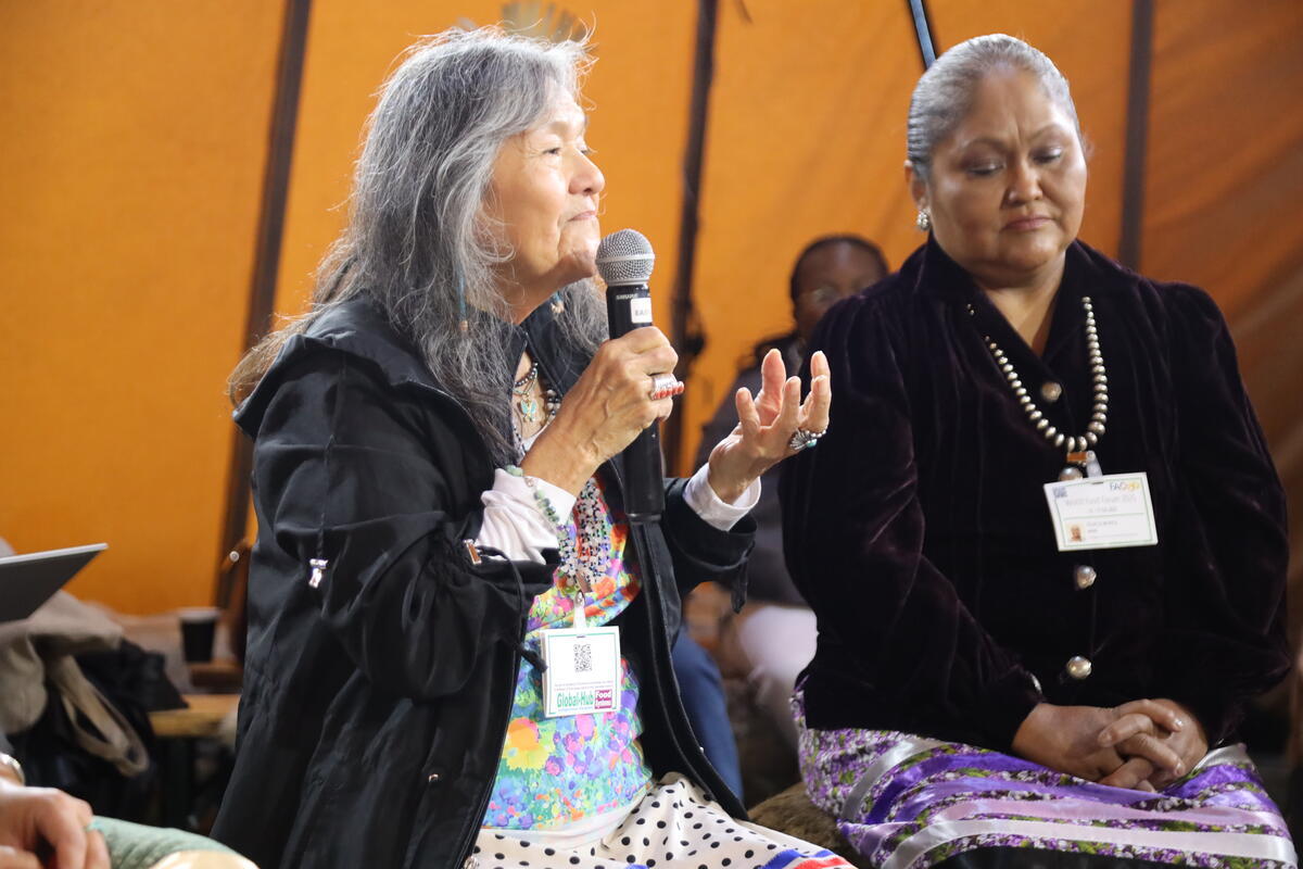14 October 2025. FAO Headquarters, Rome, Italy. Mona Polacca, charter member of the International Council of the 13 Indigenous Grandmothers, speaks at the Indigenous Youth and Intergenerational transmission of knowledge.